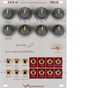 VDL-6 - dual/stereo 6-pole diode low-pass ladder Filter with 2x4 multi slope outputs (Release March 2015, 73 units circulating) Manual VDL-6 HDH-6 |